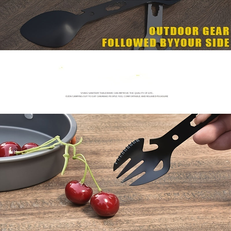 Outdoor Stainless Steel Multi-function Fork Spoon Tableware Combination Bottle Opener Fish Harpoon Camping Survival Equipment